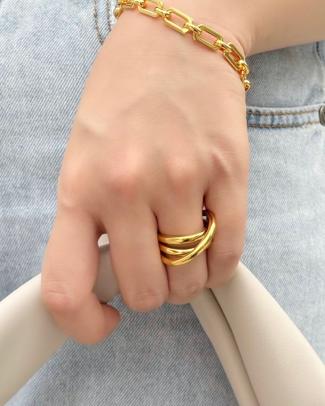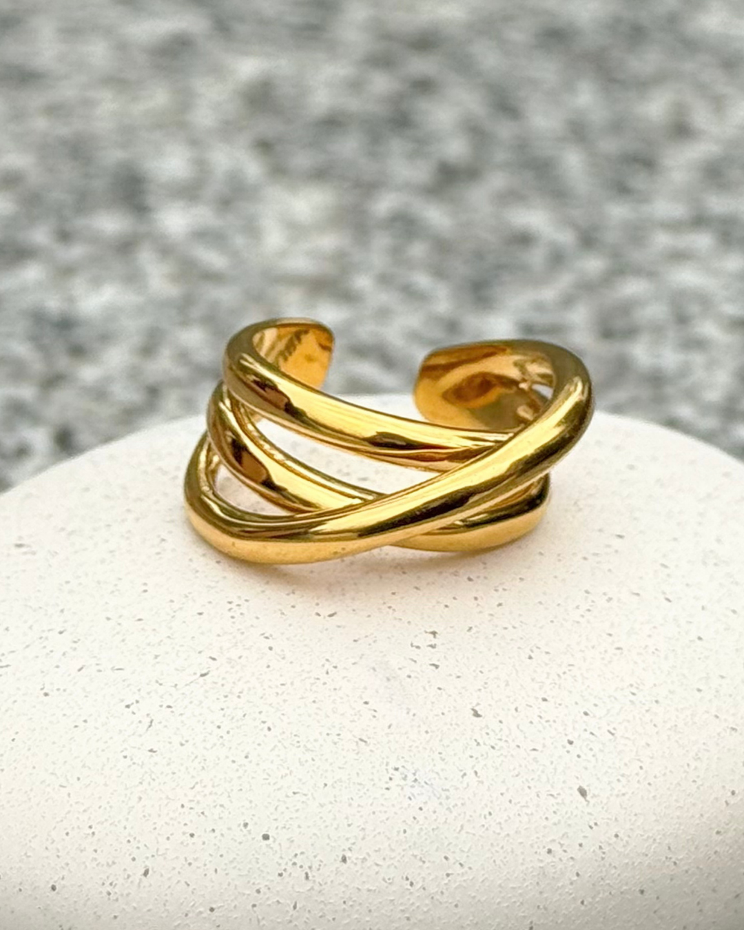 多層跨線條交錯開口戒指